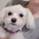 Piesek mały,szczeniak⁷mcy biały,pod oczkami na włoskach ma zabarwienie brązowe. Miał na sobie zieloną obrożę przeciwkleszczowa i najprawdopodobniej syn założył mu obroże czerwona na smycz.Skula się jeśli ktoś do niego podchodzi i myrda ogonkiem.