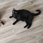 Black cat. 6 years old, approx. 6,5kg. Black short hair with small white spot under his neck and lower belly. His right ear has a cutted spot. Green eyes. His very afraid of people and other animals. His sterelised and he has problem with kidneys.