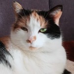 pyszczek w typie persa, okrągła głowa, puchata, biało-buro-rudo-czarna, sterylizowana, reaguje na imię, ale niekoniecznie przyjdzie