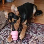 Owczarek niemiecki długowłosy, ma wadę zgryzu, bardzo pobudzony ale łagodny.