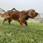 rudy spanielek ok 40 centymetrów , kocha być z ludźmi ,jest bardzo posłuszny.