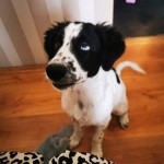 jedno ucho stojace drugie oklapniete, kolor pieprz i sol