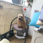 Ben to młody, mały pies. Waży około 12 kg i ma czarno-brązowe futro.