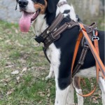 Czarny, miejscowy brak futra na lewej łapce po ugryzieniu. Zaginął z obrożą i smyczą.