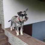 Krótko ścięty z czarna maska na pyszczku, pies płochliwy i nie ufny