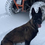 Owczarek belgijski suka czarna maska widoczna blizna po kastracji