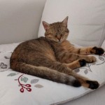 Szuszu jest bardzo miła kocha ludzi ,łasi się i wygina radośnie grzbiet ,ma plamkę na nosku zabawną grzywkę na dwie strony.Jest wysterylizowana , na chip na grzbiecie coś w rodzaju skrzydeł a na karku szare serduszko,ogon cały szary.