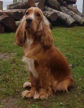 Maść ruda, z białym krawatem i białą linią wzdłuż noska. Przestraszyła się strzału, który był w okolicy.
