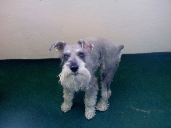 Piesek rasy sznaucer miniatura, szary. Podobny do tego ze zdjęcia, ale nieostrzyżony. Krótki ogonek. Ma obrożę. Zaginął w okolicy ulicy Długojowskiej w Radomiu.