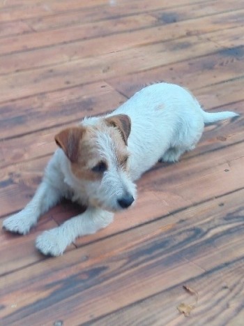 jest biały z rudymi łatkami