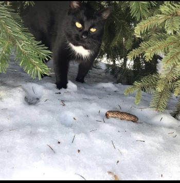 Kociczka bardzo nieufna, posiada białą łatkę na brzuszku.