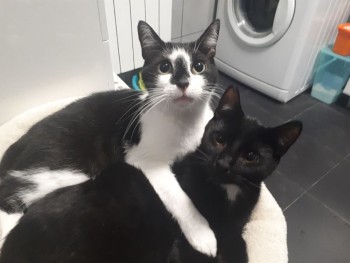 3 letni kastrowany kocurek bialo- czarny, przewaga czarnego, z czarna plama na srodku nosa i lekkim zgrubieniem wyczuwalbym tylko przy dotyku na koncu ogonka.