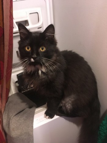 dwuletni, długowłosy, czarny ze srebrnym brzuszkiem, z białą muszką, paluszkami, plamką pod nosem, wibrysami i kłaczkami w uszach. ukochany.