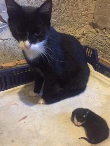 Kociczka przyjazna z biała latka na pyszczki i białe skarpetki