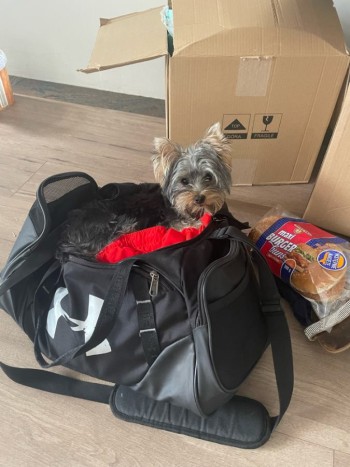 Szaro zlote umaszczenie, rózowe szelki