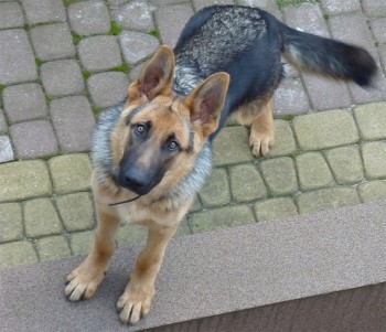 Owczarek Niemiecki, czarny podpalany, wabi się Erni, zaginął wieczorem w Warszawie na Gocławku nr. chipa 967000009128260