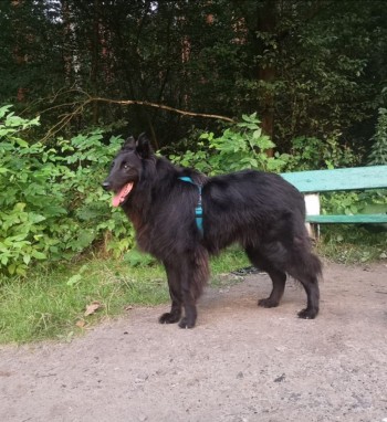 Czarny pies w typie owczarka belgijskiego, JEST PO OPERACJI, ma na sobie Ubranko pooperacyjne niebieskie i niebieskie szelki, uciekł z okolic Czerwionka-leszczyny, ostatnio widziany 19.09 około 17:00 ŁAZISKA GÓRNE - BRADA okolice ul. Orzeskiej