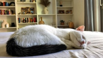 roczna mała biała kotka z czarnym ogonem - Jadźka