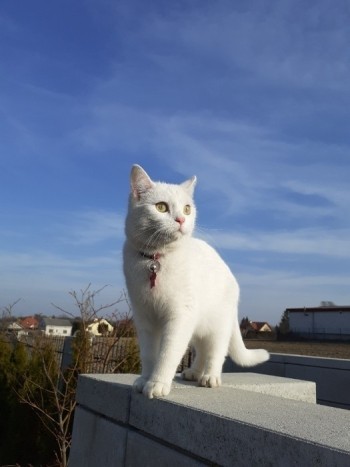 biała 2,5 letnia kotka, łagodna, przyjazna , wychowana z dziećmi, bez obroży, wysterylizowana, zaczipowana i zarejestrowana