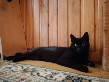 Czarek. Kocurek ok 5kg, wykastrowany, 20mies., bardzo milusiński i chętny do przytulania. Cały czarny. Dość wybredny. Zgubił obrożę.