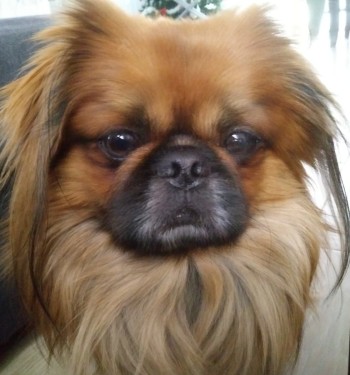Długowłosy, rudo-brązowy z czarną maską.
