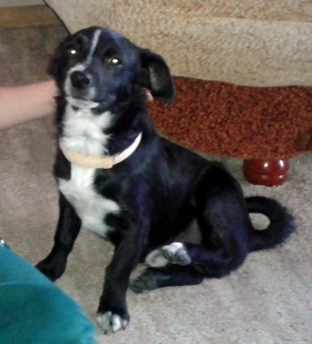 Czarna krótka sierśc, biały krawacik i białe końcówki łapek