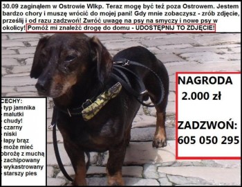 Data zaginięcia: 30/09/2014 Miejscowość: Ostrów Wielkopolski Telefon: 605050295 Numer mikroczipa: 968000010350280 Nr ID szczepienia: Płeć: Samiec Gatunek: Pies Rasa: w typie jamnika