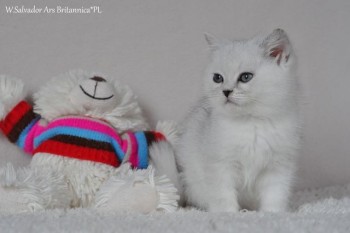 3,5 miesięczny kociak brytyjski z hodowli Ars Britannica*PL, zielone oczy, białe futerko.
