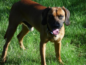 Jest to mieszanka posokowca bawarskiego z kundelkiem (taki mini posokowiec o jaśniejszym umaszczeniu), koloru brąz. Na szyi ma czarną obróżkę. Piesek jest bardzo przyjazny.