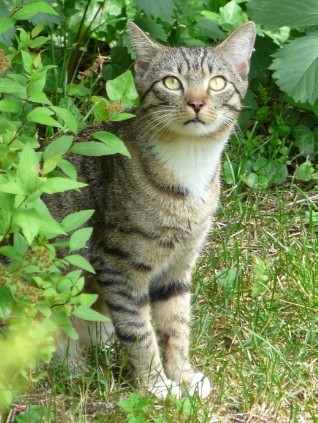 Kot ma 3 lata, jest bury, pręgowany, ma biały krawacik, charakterystyczne białe skarpety i białe pończochy, czarne poduszki stóp, żółte oczy, brązowy nos. Wykastrowany, zaczipowany, łagodny, bardzo płochliwy.