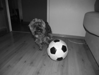 9 lat, sierść stalowo-złota, krótko ostrzyżony, wystający lewi dolny kieł, wabi się Killer. Zdjęcia niestety dość z okresu gdy piesek miał długą sierść