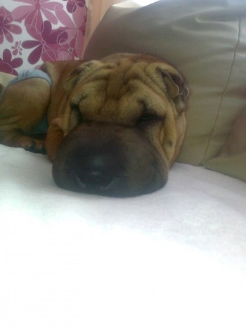 suczka rasy shar pei wiek 4 lata kolor rudo-brązowa z czarną mała pręgą na karku wabi się "Fiona"