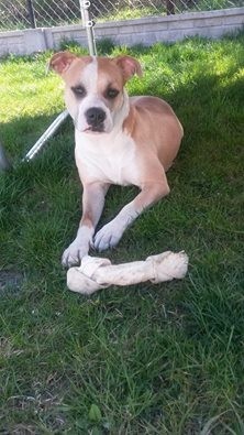 9 miesięczna suczka rasy amstaff o umieszczeniu błękitno-płowym z białymi znaczeniami