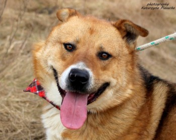 Pies duży rudy , płochliwy, boi się nieznajomych> Wykastrowany zaszczepiony.