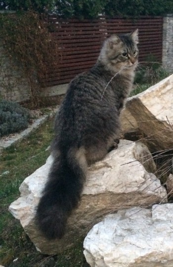 3-letni kocurek o długiej, płowej sierści z charakterystycznym puchatym ogonem. Reaguje na imię Mufi.