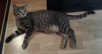 Roczny, wykastrowany, bardzo łagodny kot. Charakterystyczna zwisająca fałda skóry na podbrzyszu jak u egipskiego Mau.