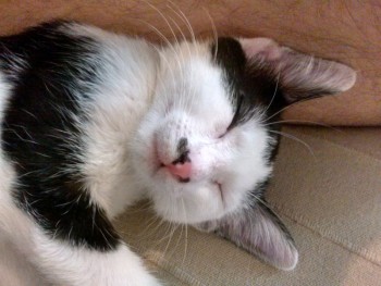 9 miesięczny, szczupły kocurek, czarno-biały, czarna plamka na nosie