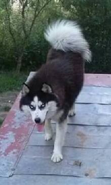 2-letni czarno biały pies, oczy niebieskie. Chory, na specjalnej diecie.