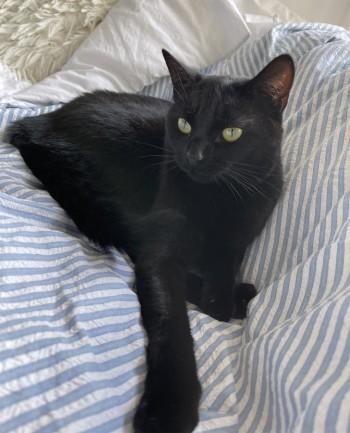 Kotka ma na imię Winnie (czyt. Łini). Jest cała czarna, z charakterystycznymi pojedynczymi białymi włoskami w uszach i jedną białą rzęsą nad lewym okiem. Poza tym nie ma żadnych białych krawacików, brzuszka, czy łapek (może zdarzą się pojedyncze białe włoski pod szyjką i na grzbiecie). Ma 3 lata, jest smukła i kiedy się kuli wygląda na młodsza. Ma zielone oczy z żółtymi obwódkami. Posiada bliznę na brzuchu po sterylizacji. Jest bardzo strachliwa, może nie podejść do ludzi, raczej też nie podejdzie do dużego psa. Nie mam jej od 23.09. Do tej pory chodziła tylko do ogrodu.