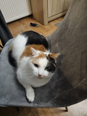 Purina posiada czarna plamkę na grzbiecie w kształcie puzla