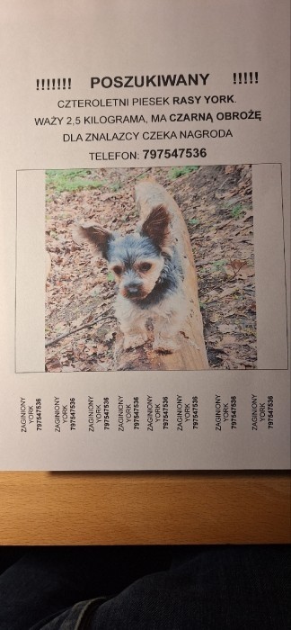 Data zaginięcia: 21/11/2024 Miejscowość: Gdynia Telefon: +48797547536 Numer mikroczipa: 616093200535374 Nr ID szczepienia: Płeć: Samiec Gatunek: Pies Rasa: york
