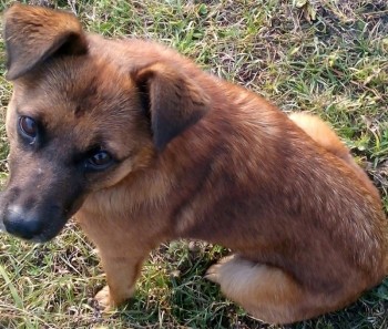 Rudy psiak 2 letni,do kolan , cecha szczególna Brak Ogonka i wilcze pazury przy tylnych łapkach