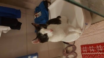 Kocurek 4 lata, biało- czarny, zadbany, zaczipowany, wykastrowany, raczej nieufny.