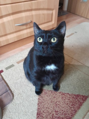 cała czarna z biała krawatka i z białą częścią podbrzusza .Reaguje na imię Pumcia lub Niunia.Ma 10 lat . Widziana na Nowolipkach 19 lub 23