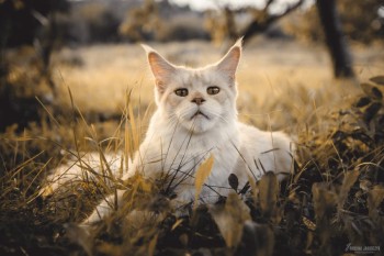 Kocur rasy Maine coon, w kolorze kremowym. W dniu zaginięcia miał czerwoną obrożę ze swoim imieniem i numerem telefonu.