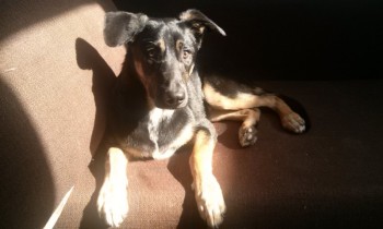 czarny, podpalany kundelek, średniej wielkości, z bialą krawatką, przyklapnięte uszka, bardzo energiczny, nieufny
