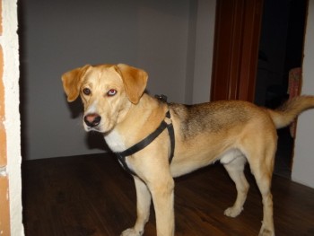 Wabi się Elmo. Pies ma czarna pręgę na plecach, ma dwukolorowe oczy jedno niebieskie drugie brązowe. Jest wysokości do kolana. Elmo ma niecały rok. Elmo reaguje na swoje imię oraz na gwizdanie.