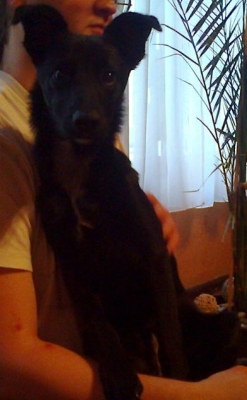 Mieszaniec o krótkiej, czarnej sierści z charakterystycznym białym krawatem. Około 60 cm wysokości w kłębie, postura owczarkowata. Zgubił się ubrany w czerwone szelki z zawieszką dot. szczepienia. Płochliwy i nieufny względem obcych, ale ogólnie przyjazny. Uciekł w dzielnicy Karb, w okolicy kościoła.