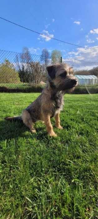 brązowy podpalany 6 kg suczka border terrier umaszczenie grizzly