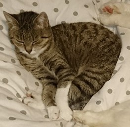 Mała kotka, około 3kg , barwy burej, pręgowana, białe "skarpetki" na łapach. Nie jest agresywna. Zaginęła w Niemczech na autostradzie A4, na parkingu pomiędzy Leverkusen a Aachen, w nocy pomiędzy 20 a 21 lutego 2016.